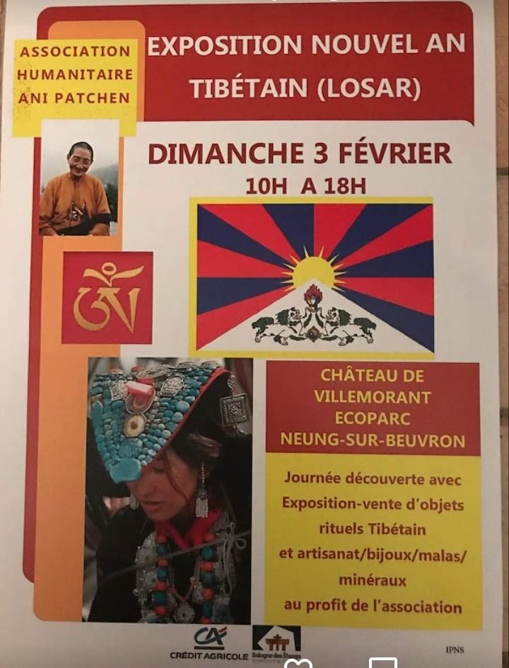 LOSAR 2019 (jour de l'an tibétain) château de villemorant neung sur beuvvron 3 fevrier 2019 l'association "ani patchen" remercie les 250 visiteurs,les adhérents,et les donateurs pour leur présence et leur intérêt pour la cause des femmes tibétaines et la découverte de l'art et l'artisanat du tibet.. tou djé tché ( merçi beaucoup)nous avons fait 900 euros de bénéfice cette somme sera envoyée à tibétan woman's association à mac léod ganj(dharamsala) encore merçi à toutes et tous et a l'année prochaine jcd