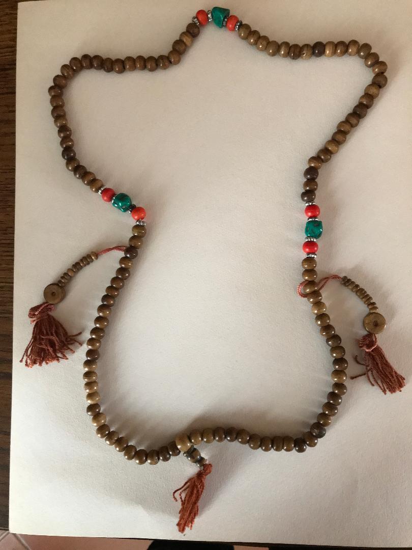 Le MALA (Tengwa en Tibétain) Objet sacré en partie fabriqué par les femmes Tibétaines Le MALA est le chapelet Bouddhiste, fidèle compagnon du pratiquant qui le tient souvent à la main, enroulé autour du poignet ou autour du cou comme un collier. Le mot MALA signifie en SANSKRIT "collier de fleur" ou "guirlande de perles" Il s'agit d'un chapelet regroupant 108 perles pouvant symboliser selon les pays: - Les 108 épreuves subies par le Bouddha pour atteindre l'illumination et les 108 noms du Bouddha - Les 108 passions que doit surmonter le fidèle afin de se rapprocher de son idéal de méditation et d'ascétisme - Les 108 MUDRAS (gestes rituels) dans le TANTRA - Les 108 positions corporelles dans le YOGA - Les 108 feux allumés au Japon dans les cérémonies du culte des morts - Les 108 tombeaux extérieurs au Mont HIEI près de Kyoto au Japon - Les 108 liens Karmiques, les 108 faiblesses (l'illusion, les désirs, la haine, l'attachement, l'orgueil, l'ignorance, etc...) MALAS disponibles à l'association