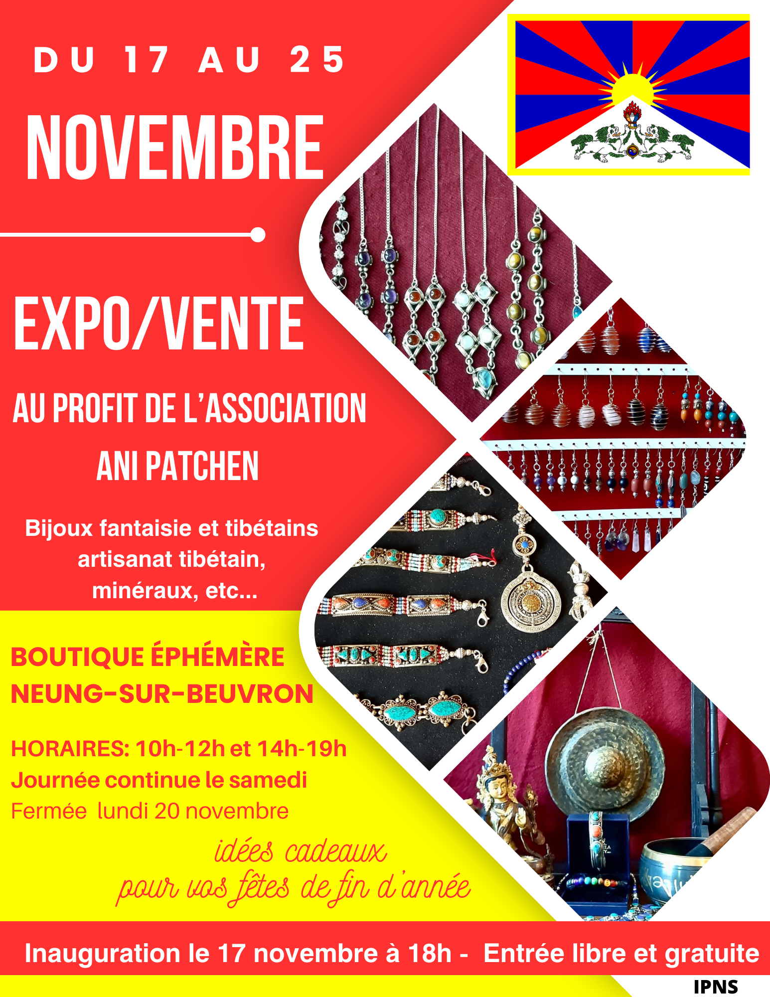 TASHI DELEK NOUS SOMMES HEUREUX DE VOUS ANNONCER NÔTRE EXPO/VENTE DANS LA BOUTIQUE EPHEMERE DE NEUNG SUR BEUVRON 41210 DU17 AU 25 NOVEMBRE DE 10H A 12H ET 14H A 19H INAUGURATION LE 17 NOVEMBRE A 18H AU PLAISIR DE VOUS RETROUVER TOU DJE TCHE